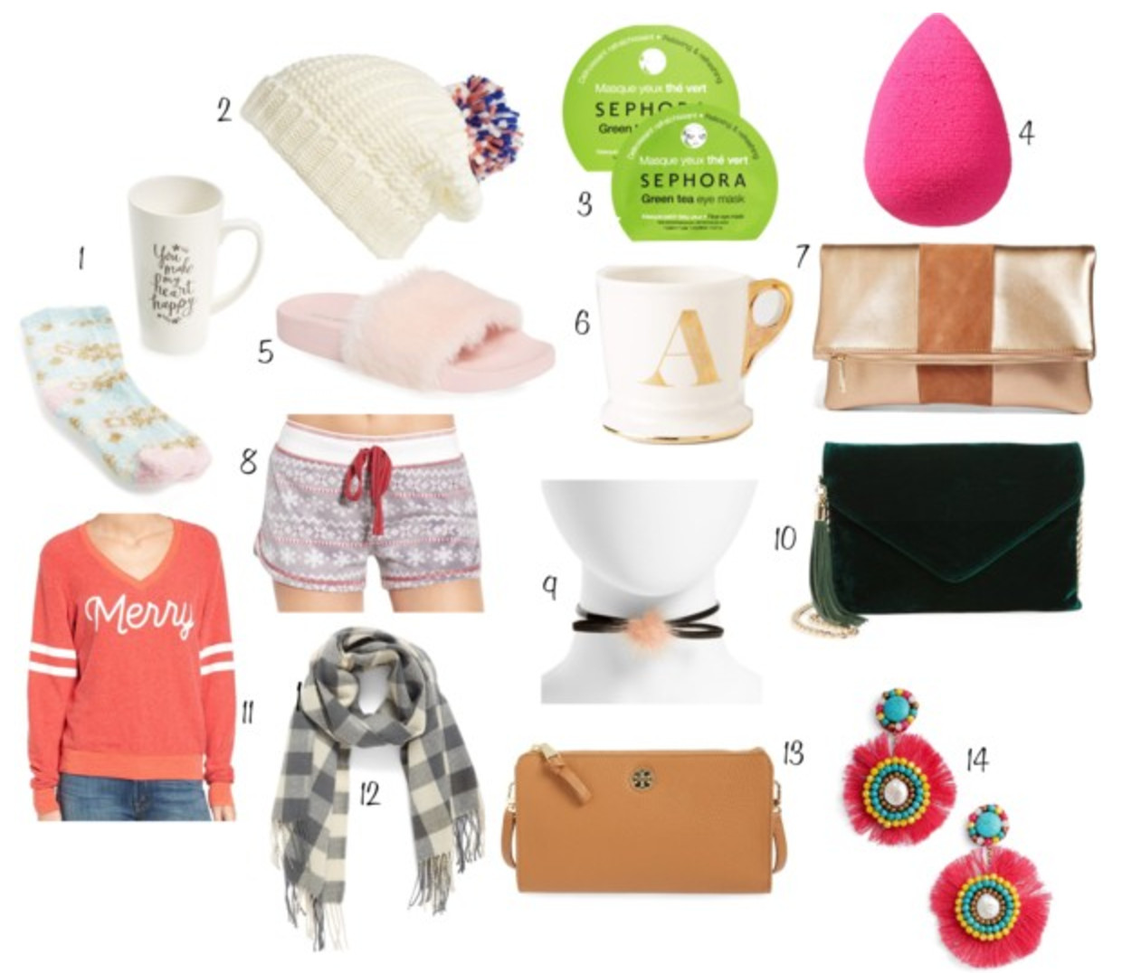 Only four sleeps until Christmas! There still time to buy stocking stuffers and gifts before Christmas but you're running out of time to get it shipped to arrive by the 25th! Ok so first things first, everybody should own this famous Golden Monogram Mug - it's only $10 and seriously so cute! It's literally perfect for a coworker, friend, sister, aunt, you name it and you can't beat the price! If you're looking for a $5 stocking stuffer look no further than these Green Tea Eye Masks. They relax the skin around the eye to achieve a bright, revitalized look. For the sneaky expensive gift that is hiding in the Christmas stocking, go for the Tory Burch Crossbody Wallet. It's the perfect size and very high quality. I personally would love to own this Buffalo Plaid Scarf and how cute would this Tassel Velvet Crossbody be for NYE? Pair it with the Pom Pom Choker and you'll be super on trend. Good luck and happy shopping!